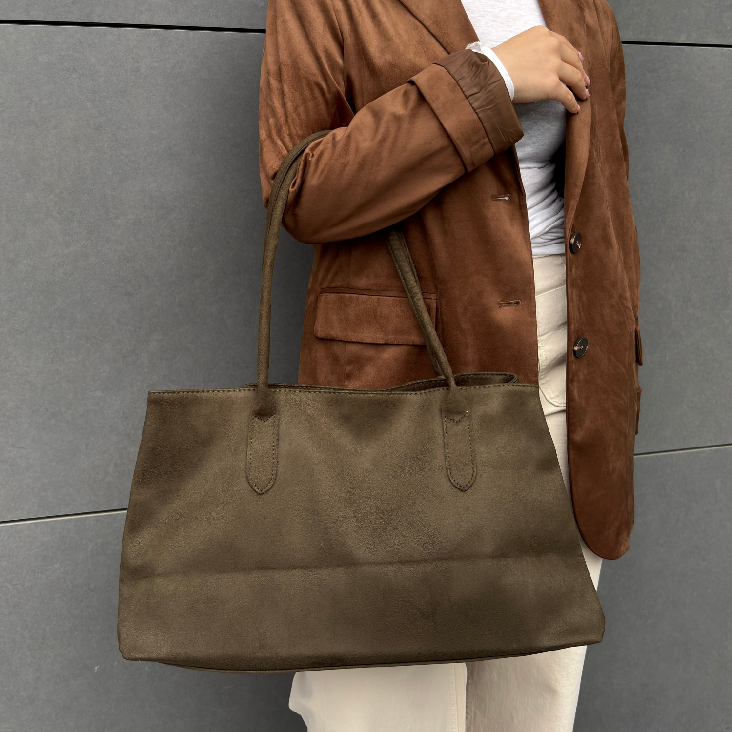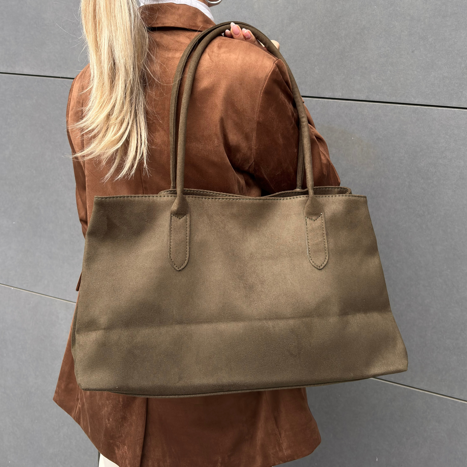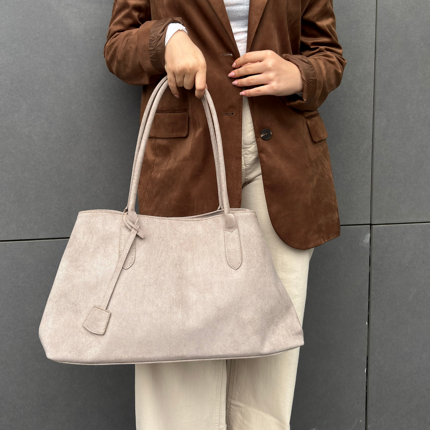 Şıklığı ve işlevselliği bir arada sunan Yako Sorel, yumuşak süet dokusuyla zamansız bir zarafet oluşturur.; Geniş iç hacmi sayesinde tablet, telefon, kitap ve defter gibi günlük eşyalarınızı rahatlıkla taşır.; Uzun omuz askısı sayesinde konforlu kullanım sunan bu model, ofis ve şehir hayatı için mükemmel bir tamamlayıcıdır.; Ölçüler: •En: 42 cm •Boy: 25 cm •Taban: 13 cm •Askı uzunluğu: 62 cm •Yumuşak süet dokulu dış yüzey •Geniş iç hacim •Tablet, kitap ve defter taşımaya uygun •Fermuarlı ana bölme •Şık ve sade omuz askısı •Günlük ve ofis kombinleri için ideal Zarif çizgisiyle her kombine sofistike bir dokunuş katan Yako Sorel, sade şıklığın modern yorumu.