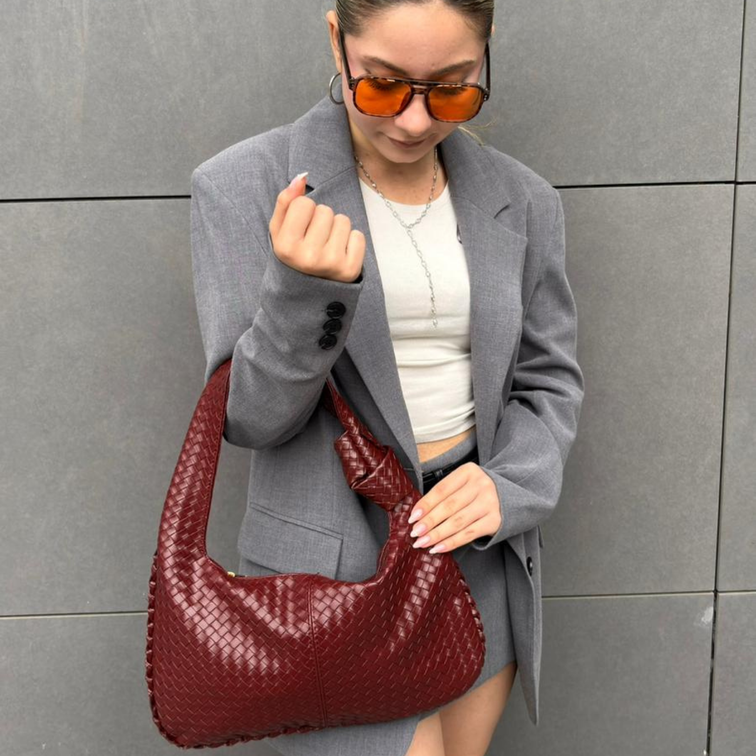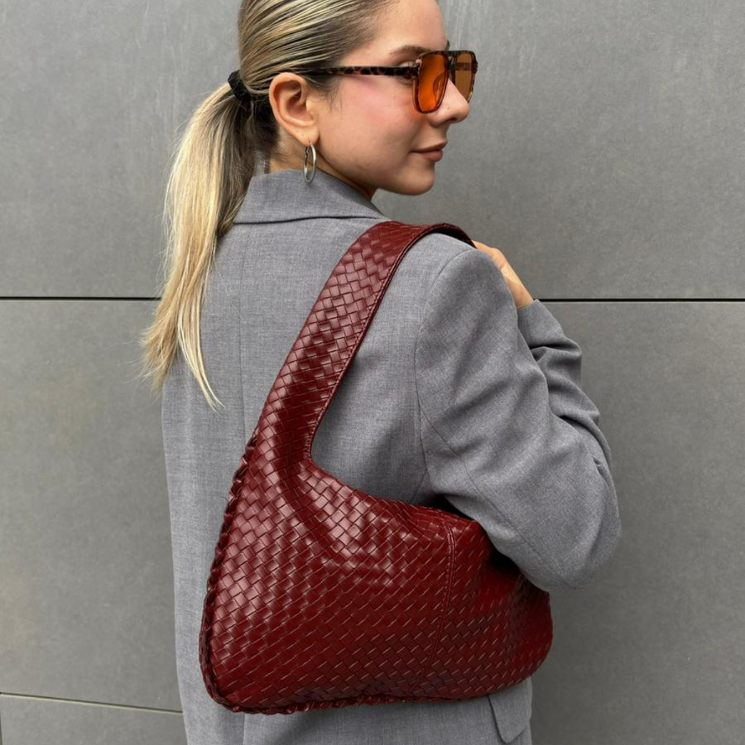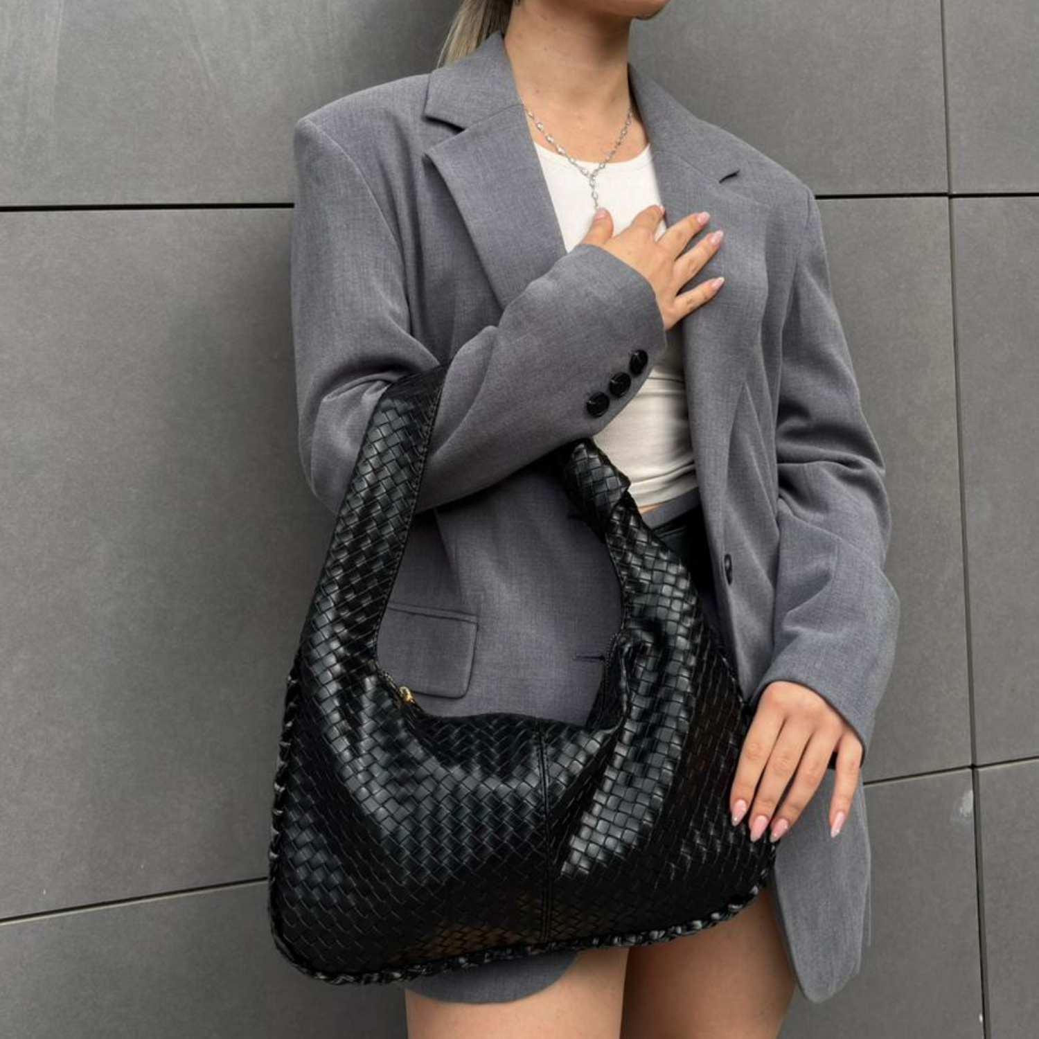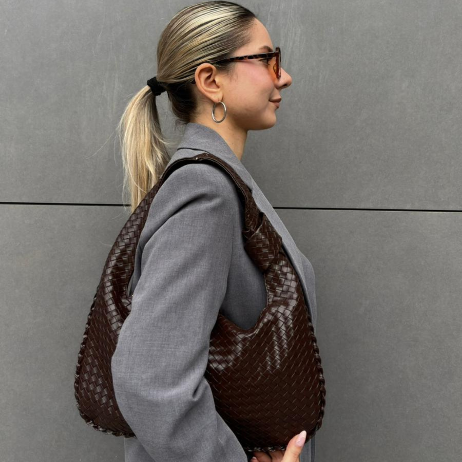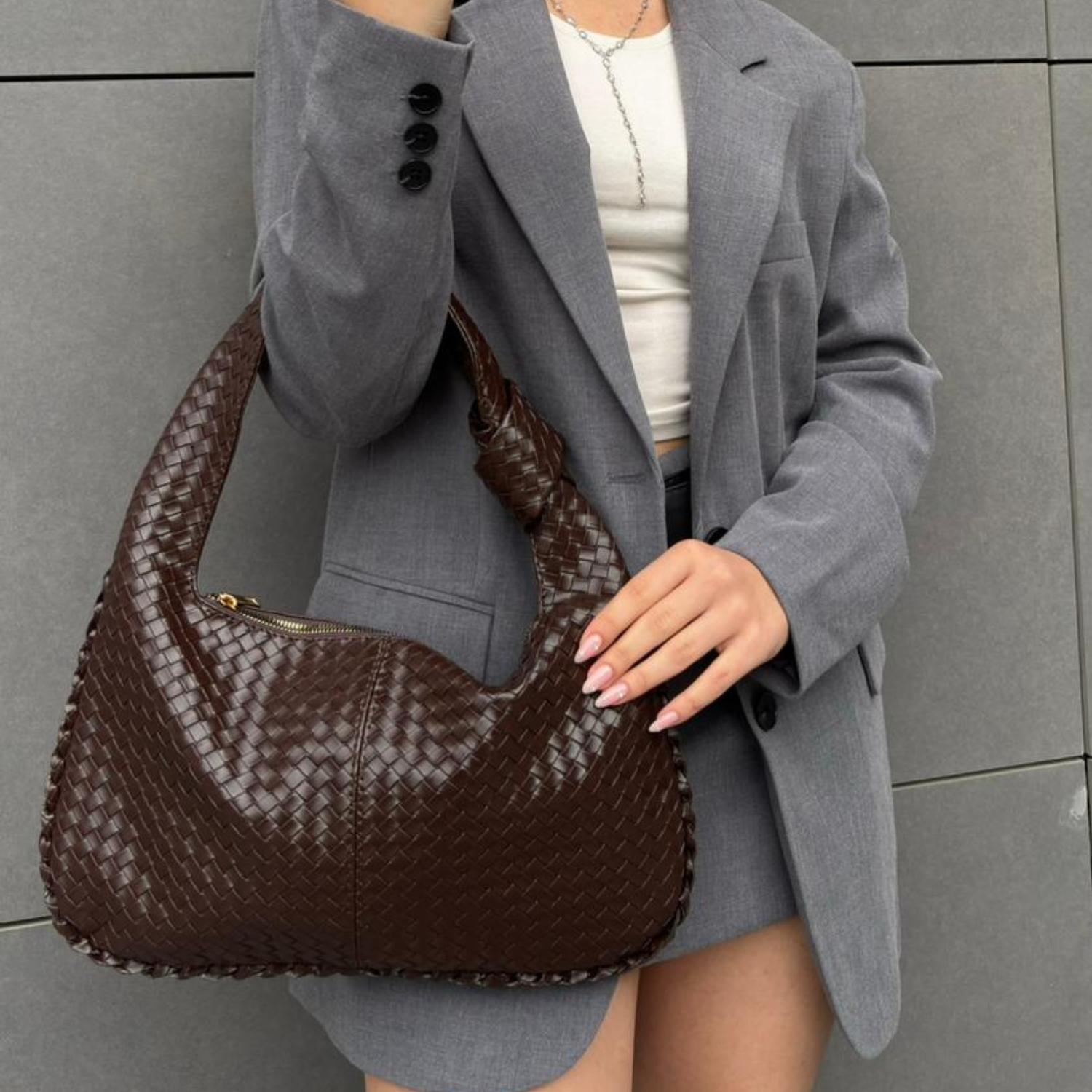 Roma Örgü Dokulu Suni Deri Geniş Hacimli Günlük Kadın Omuz Çanta