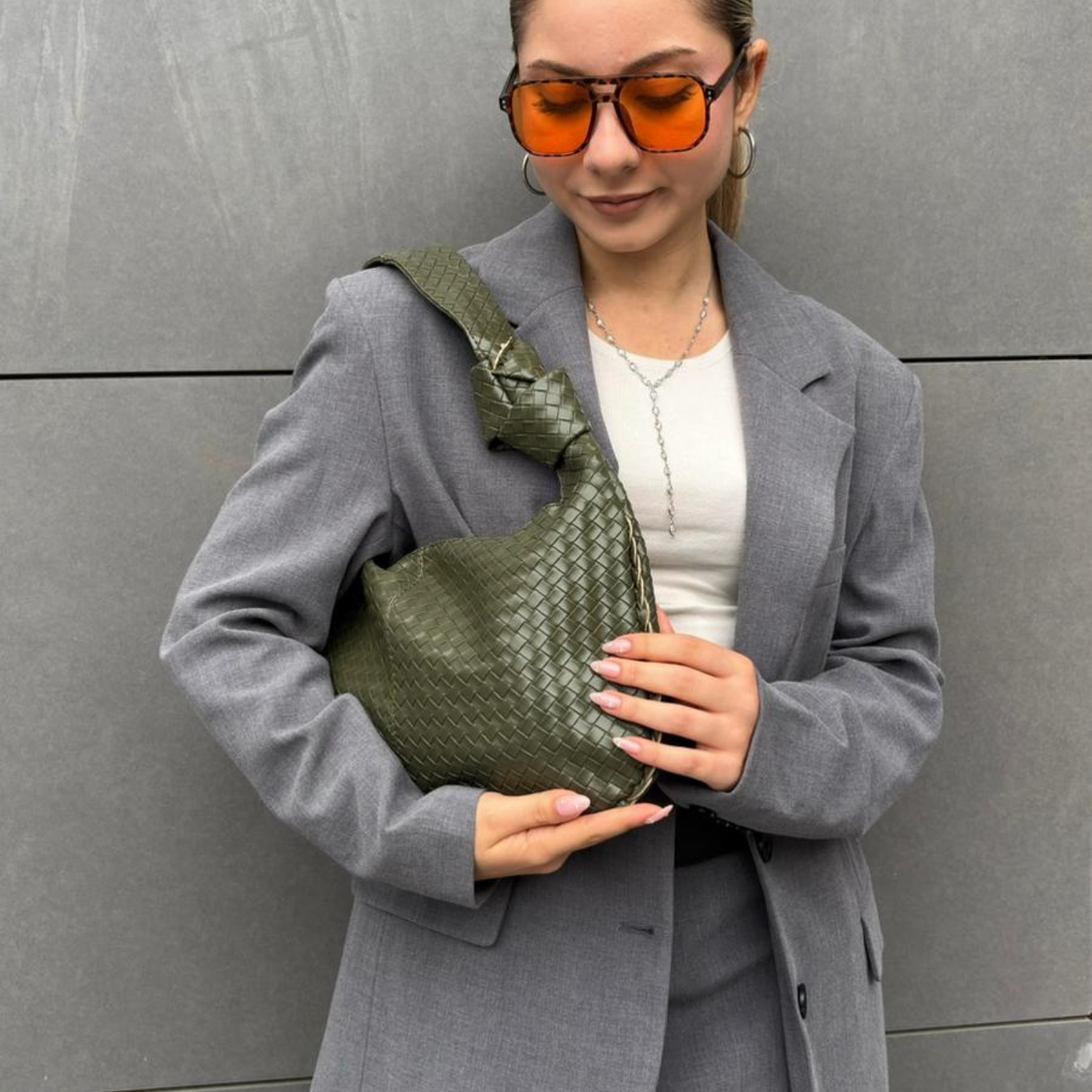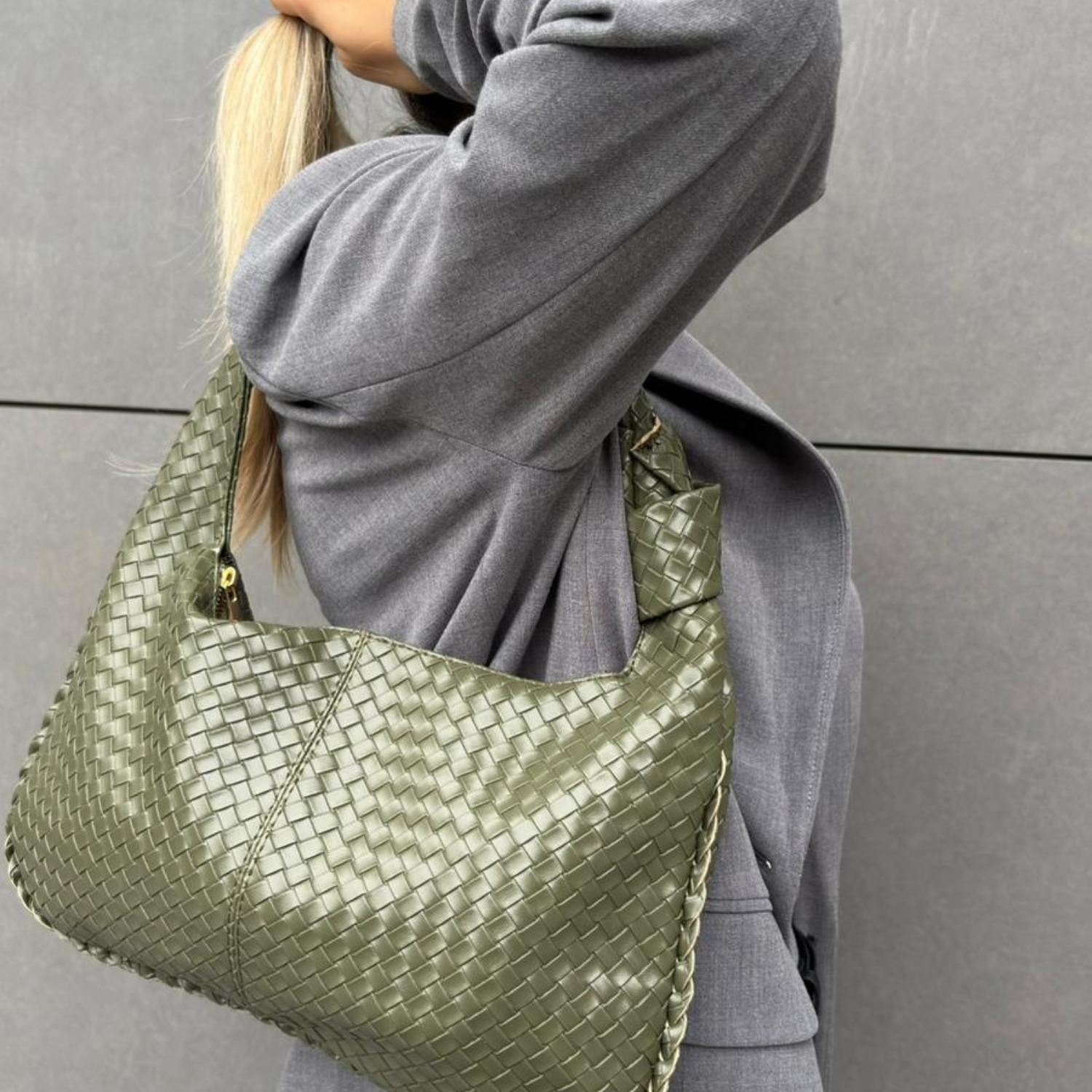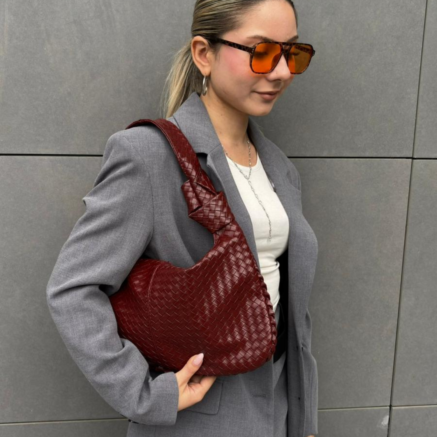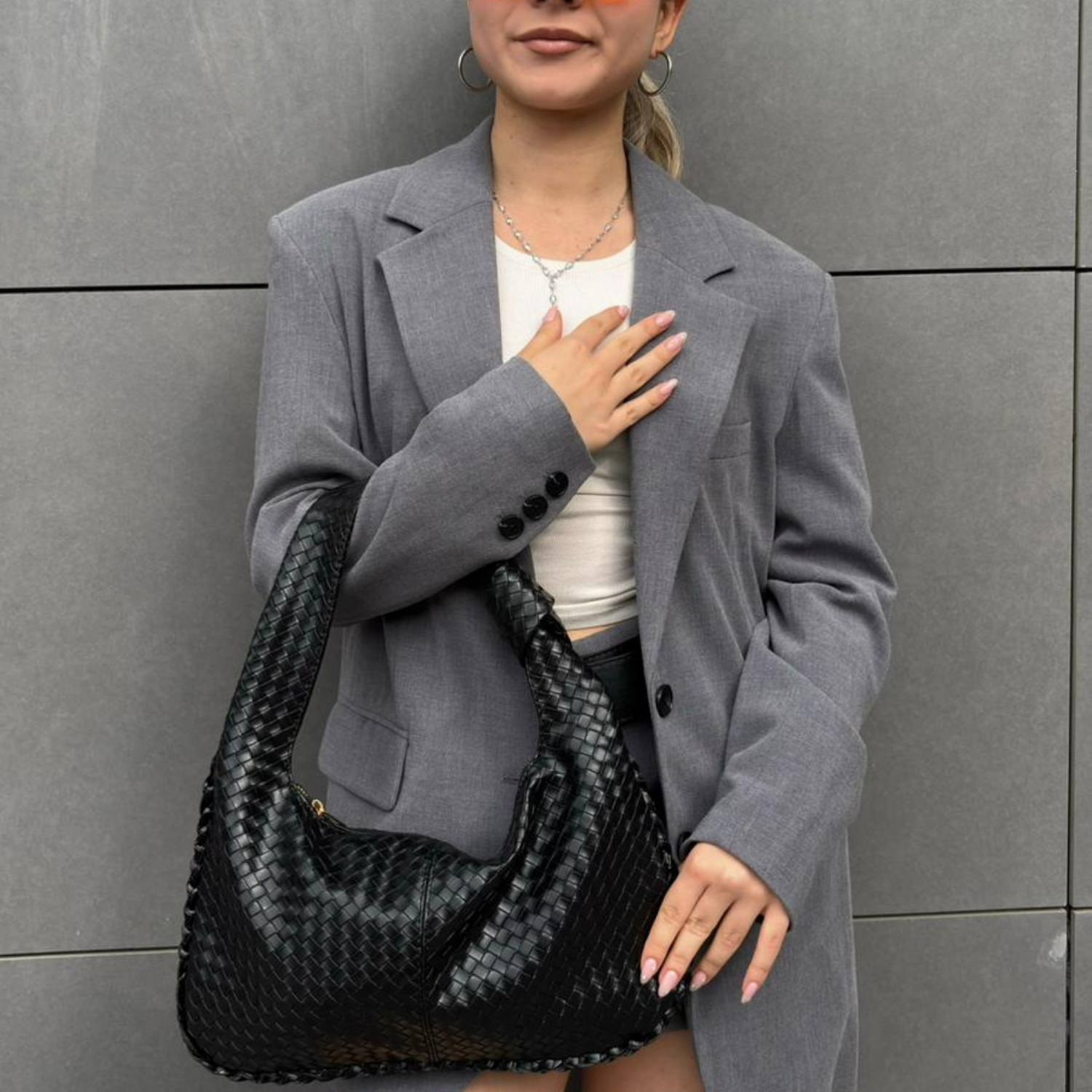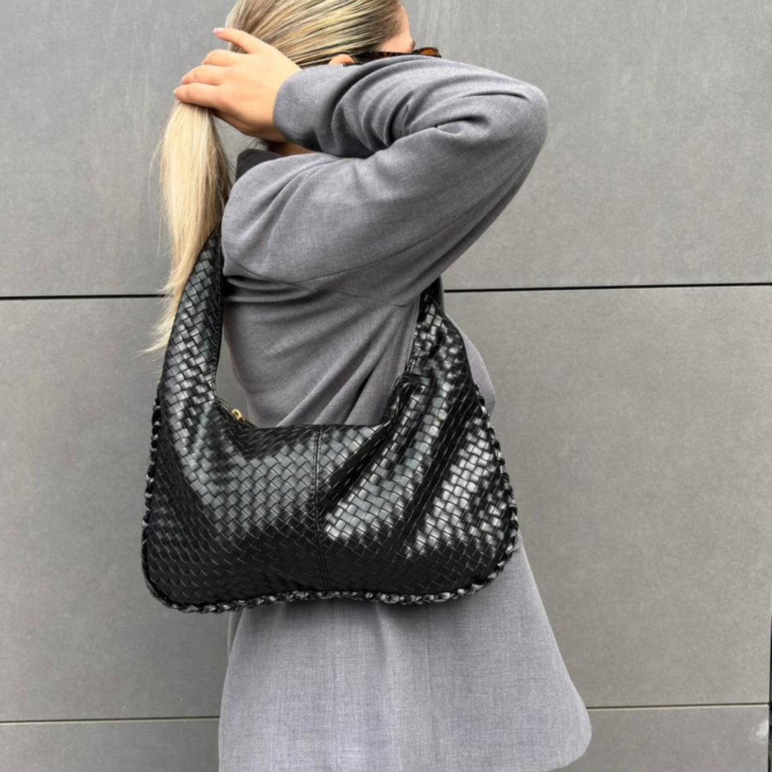 Roma Örgü Dokulu Suni Deri Geniş Hacimli Günlük Kadın Omuz Çanta